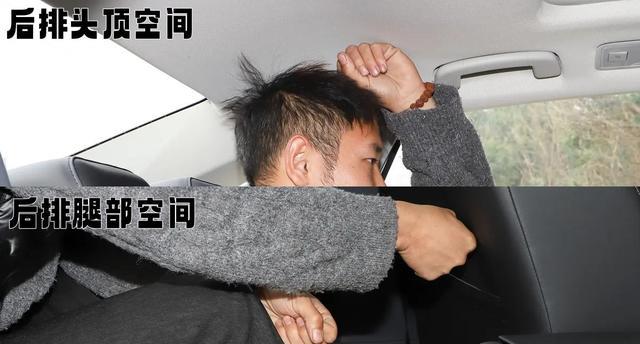 车内乘坐空间方面,我的身高是175cm,坐到驾驶位并调整到适合我驾驶的角度后,头顶空间还能剩下1拳。转移到第二排后,头顶空间还能剩下1拳,腿部则是2拳多。显然,虽然轴距不算长,但大众的空间优化水平依旧出色,不过后排中间还是有明显凸起,长时间乘坐中间位置会比较难受。