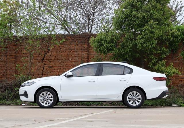 新车侧面则是经典的三厢车轮廓,车身腰线呈现出上扬趋势,所以看起来还是有着不错的运动效果。作为入门版本,这台车搭载的是195/65的15英寸轮胎,同时整台车长宽高为4702x1815x1484mm,轴距是2688mm,与速腾L相比要小很多。